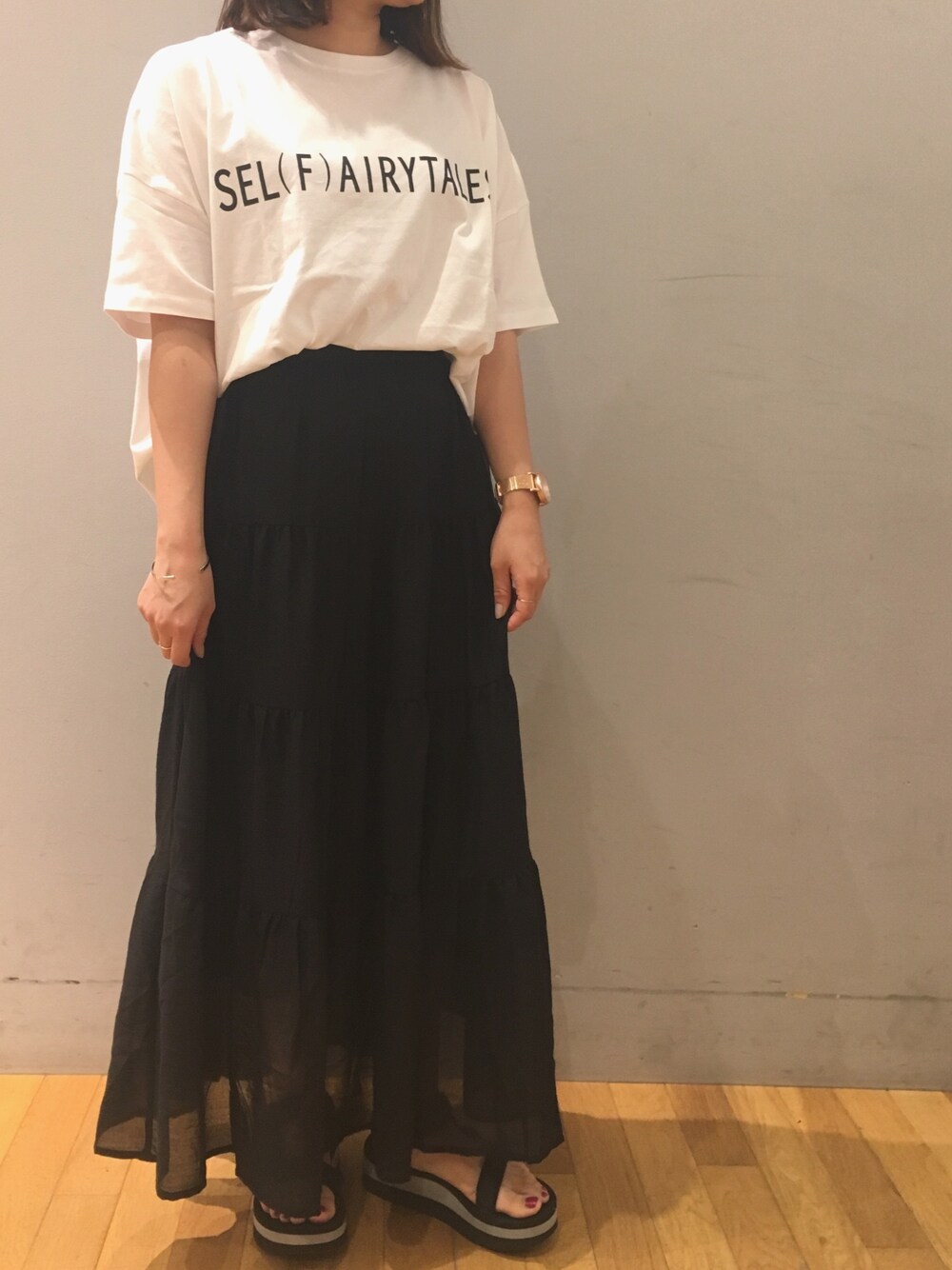 rikaのスカート「・ティアードマキシスカート ●」を使ったコーディネート