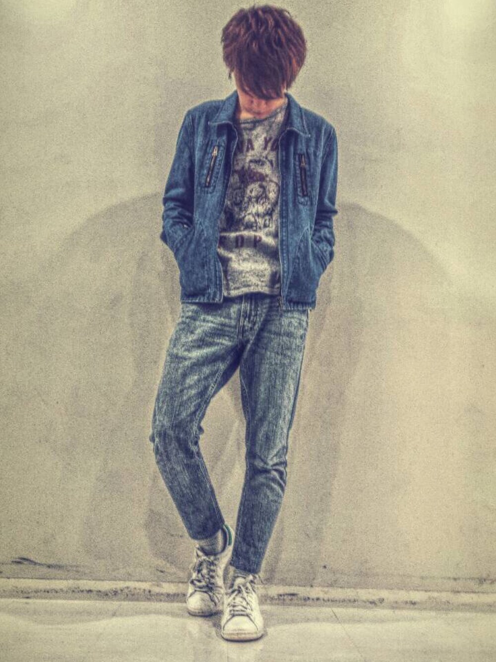 デニムonデニム! ジャケットとパンツの色味が 少し違うので同じ色味の デニムで揃えるのが ちょっと敷居が高い(-_-;) と言う方にオススメです!笑