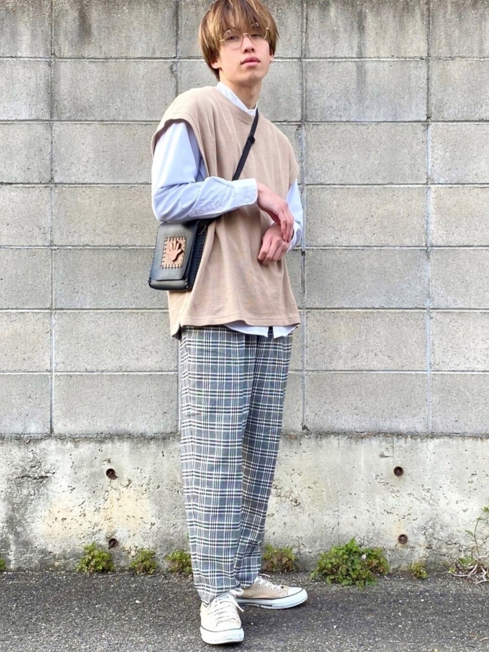 閲覧、いいね、お気に入り、フォロー、コメントありがとうございます🙏 実は今日でWEAR初めて1年…投稿全然ないなぁ〜とか思いつつ🤣最近毎日投稿頑張ってる✌️ のびのびしていこうと思います🙏 ▪丸メガネコーデ▪ 丸メガネかけてみました✌️ちょっと知的な感じかな?? 1年くらい愛用してるベージュニットベストにホワイトのバンドカラーシャツと相性抜群よ チェックパンツのデザイン好みすぎて春たくさん履きたいな