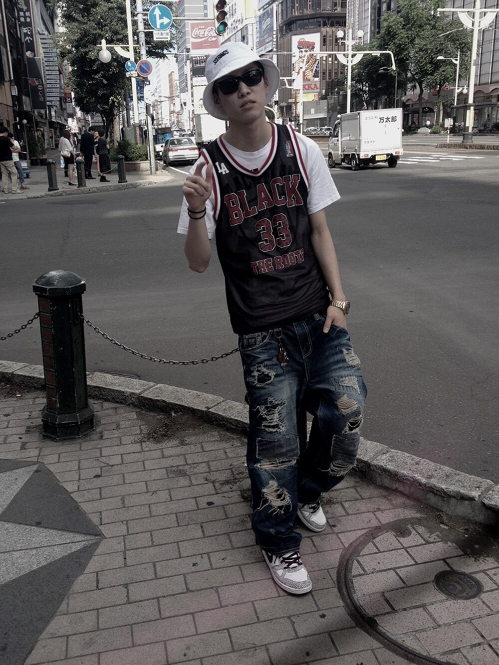 ストリート全開こーで!! Tシャツの上にタンクトップをレイヤードしたのがポイント!!! ハット、Tシャツ、スニーカーの色も何気に合わせてます☆ 僕は札幌でファッションチームというのを作って活動してます! ホームページがあるので是非チェックしてください! http://kknabro.jimdo.com/