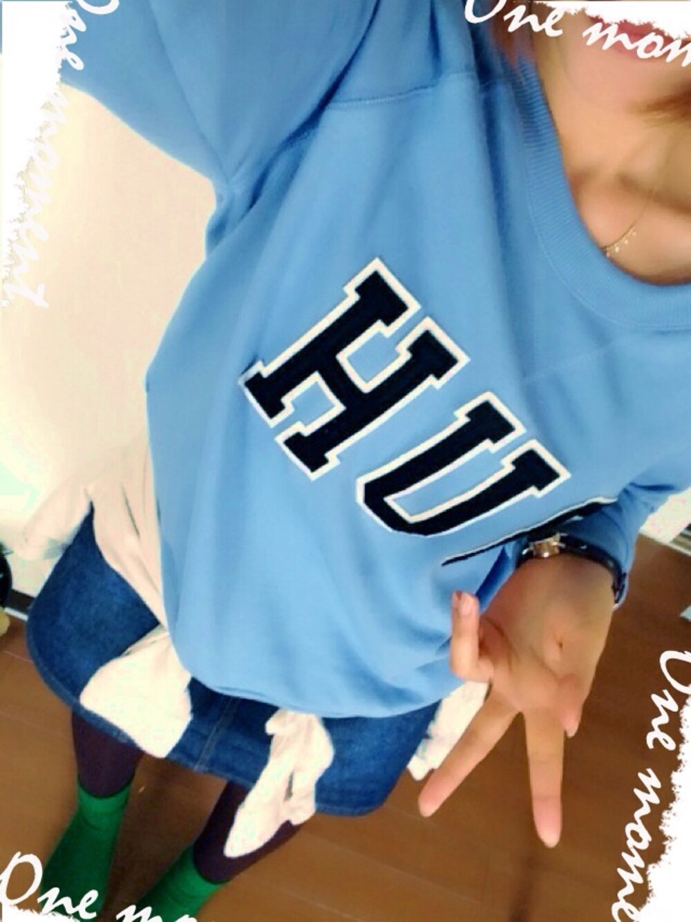 お手頃価格コーデ('∀`) 全部でたぶん1万いかない! スウェット/Sakura bois デニムスカート/WIN HEART 白シャツ/TROISSIX 靴下/tutu anna*