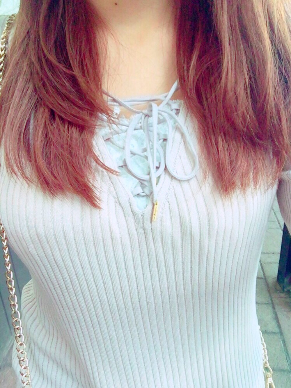 今くすみピンクが気になります!! レースアップもかわいい♡ 少し、秋意識。