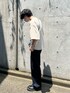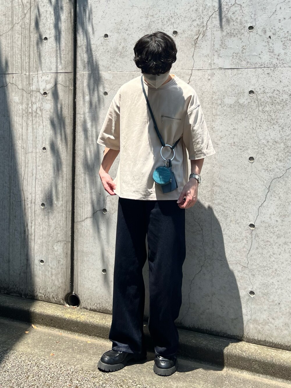 ステッチがかわいいTシャツ! ステッチがブルーなのでバッグで色を拾い、統一感をだしました/ 参考にしていただけたら嬉しいです😆 見て頂きありがとうございます😊
