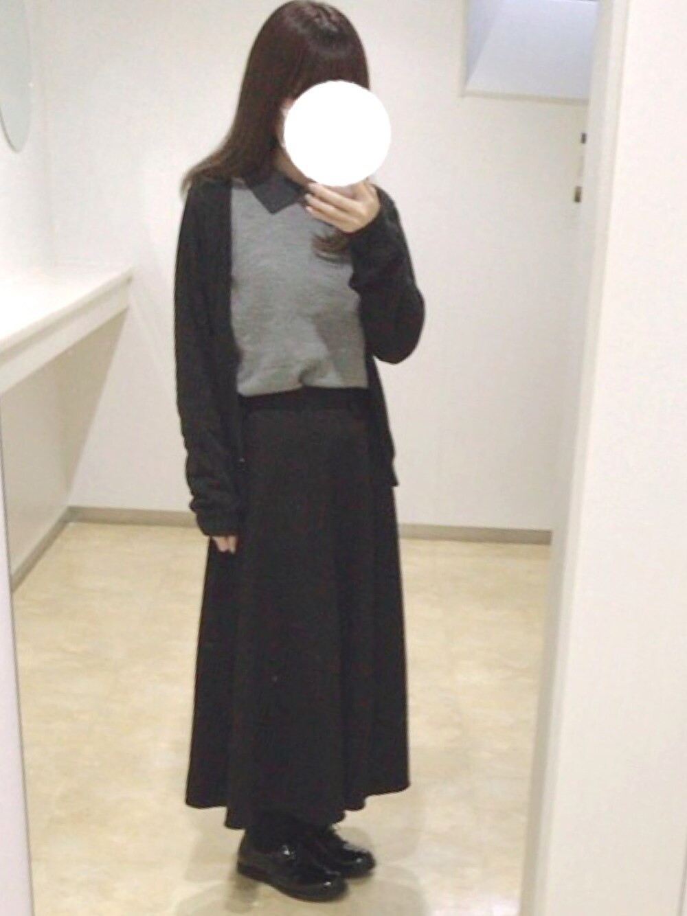 結構前に買ったものばっかりで 何も検索に引っかからなかった 載せる意味、、、😇 モノトーンコーデでした☺️ 部屋の中ではカーディガンを着て 上着はいつものモコモコを着てました🐏