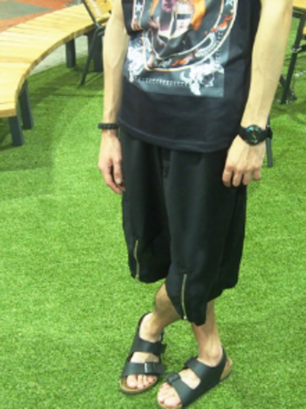 ブラック系のその他パンツを着用したメンズの夏コーディネートの1枚目の写真