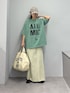 全体的にグリーンでまとめたコーデ◎ スウェットスカートで抜け感!