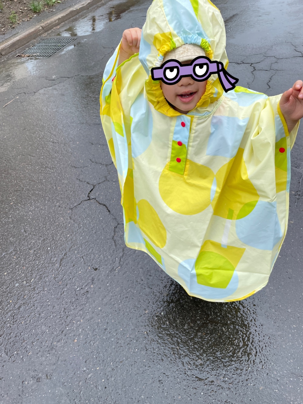幼稚園帰り初のレインコート着て、水たまりにはしゃいで、すごくいい感じだったけれど、チャイルドシートには乗りません。 が、しかし母はしつこいので30分以上かかっても乗せます(渋々乗った)