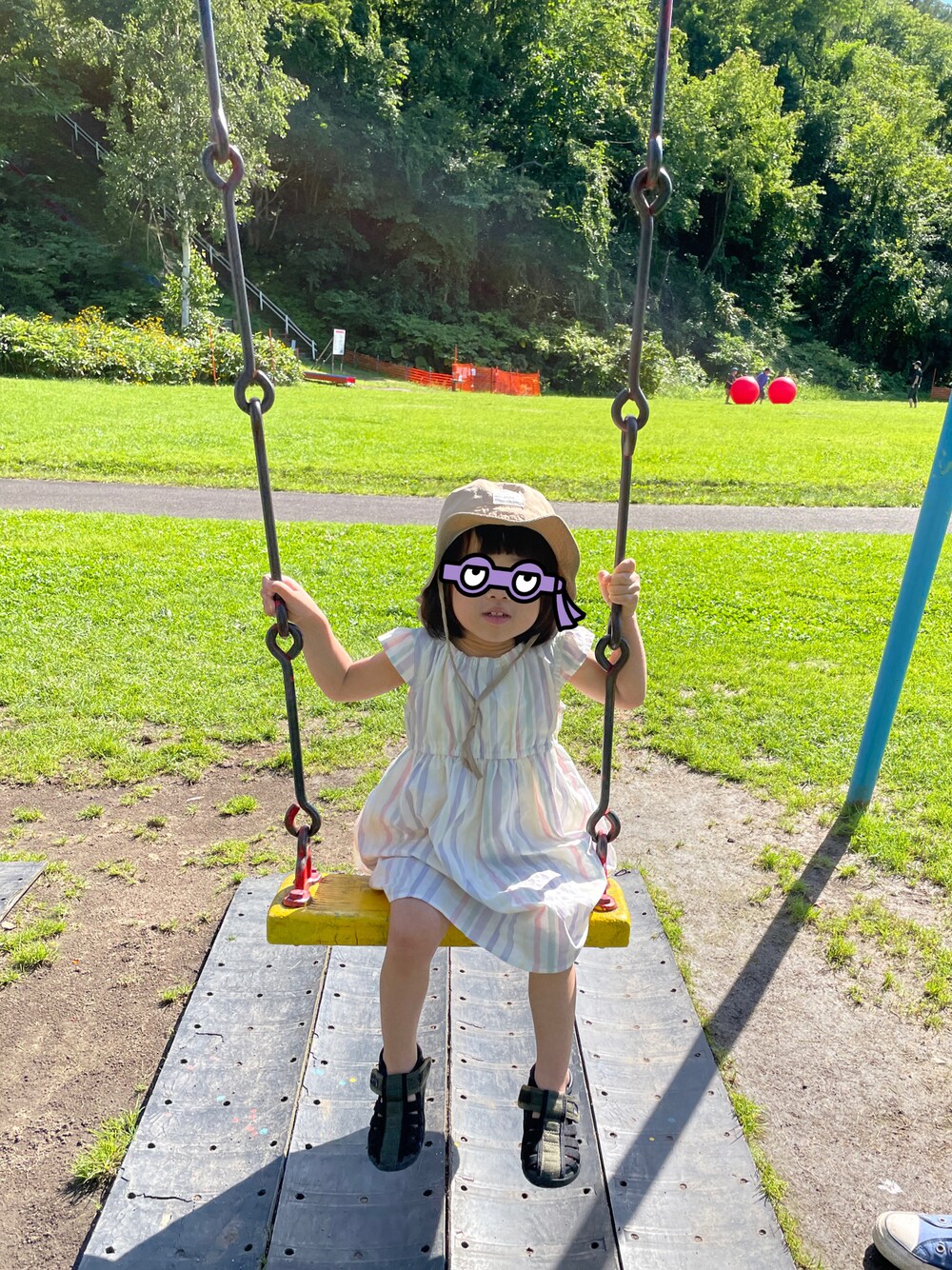 いとこどうしでおそろのワンピース 動きやすさ重視で自分だとワンピースなかなか買わないから、もらうと嬉しいねーって。