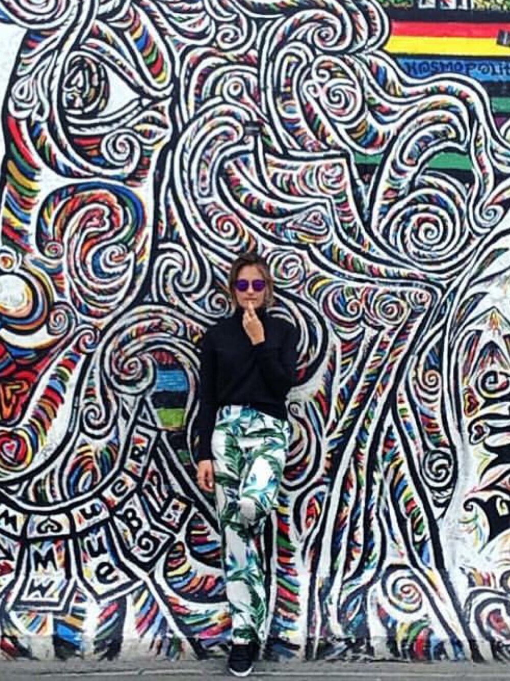 My take on "basics" - black leather point-toe trainers (forget the white tenni) and palm-print pants instead of white 🌴
