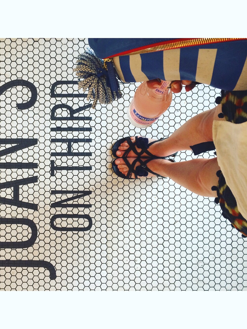 thelittleredcoatのクラッチバッグ「Clare V. Blue Zip Clutch」を使ったコーディネート