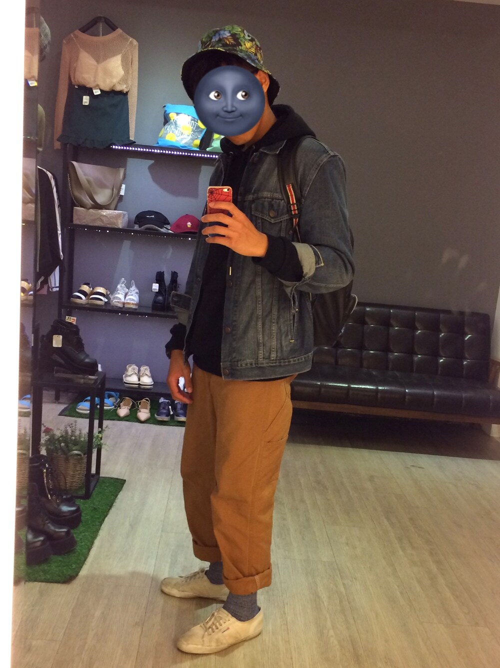 很喜歡的冷暖對比再次出動, 這次加入藍色的長襪來跟上身的外套呼應,內裏穿的黑色帽T及漁夫帽帶出一些街頭的感覺。很簡單能駕馭的一套搭配,跟大家分享! (身上穿的跟這間店沒關係,只是跟他們借鏡子😂