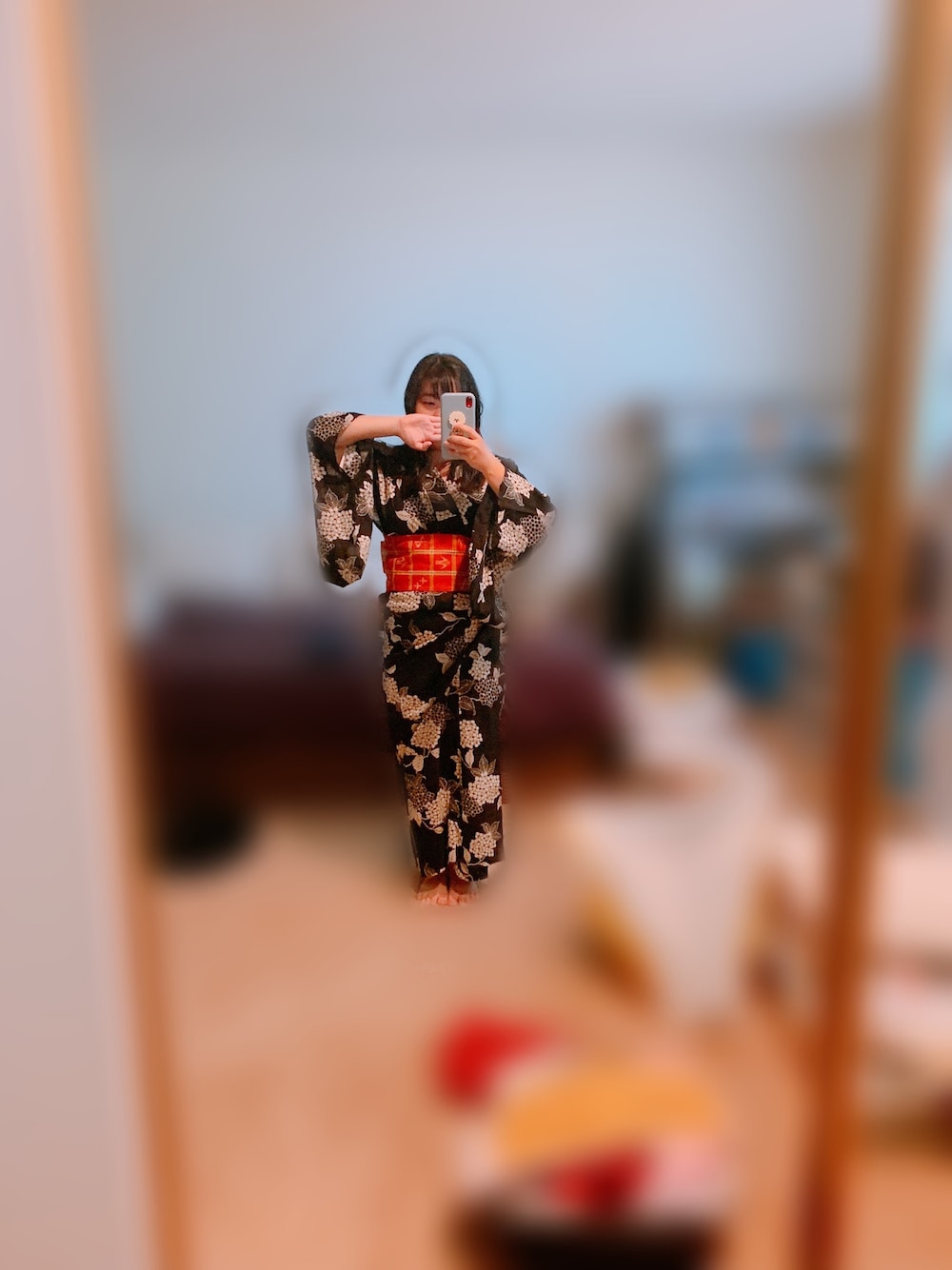 久しぶりに浴衣を着ました。🏮👘🎆 紫陽花柄の黒の浴衣、大人っぽくて良きでした。いつもはもっとカラフルなのを着ていたので。