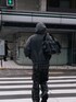 シャツとパンツの緑にグレーの雰囲気重視コーデ。シャツを腰巻してもいいと思います
