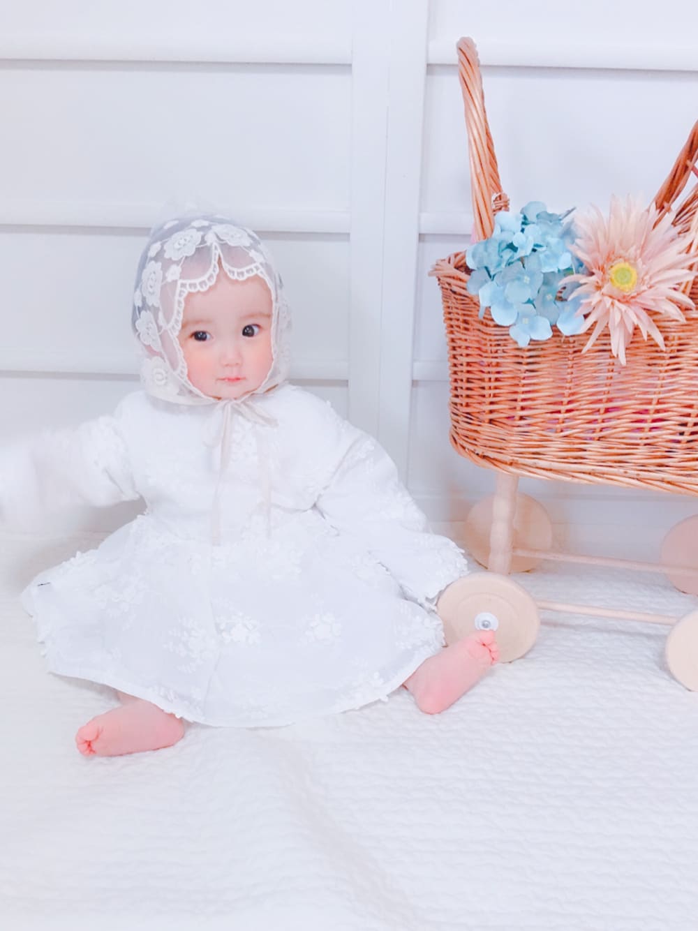 刺繍ワンピにレースボンネットの組み合わせが可愛い♡ 相変わらずキューピーさんと言われることが多くて何てかえしていいことやら。。。 あんまりうれしくない。
