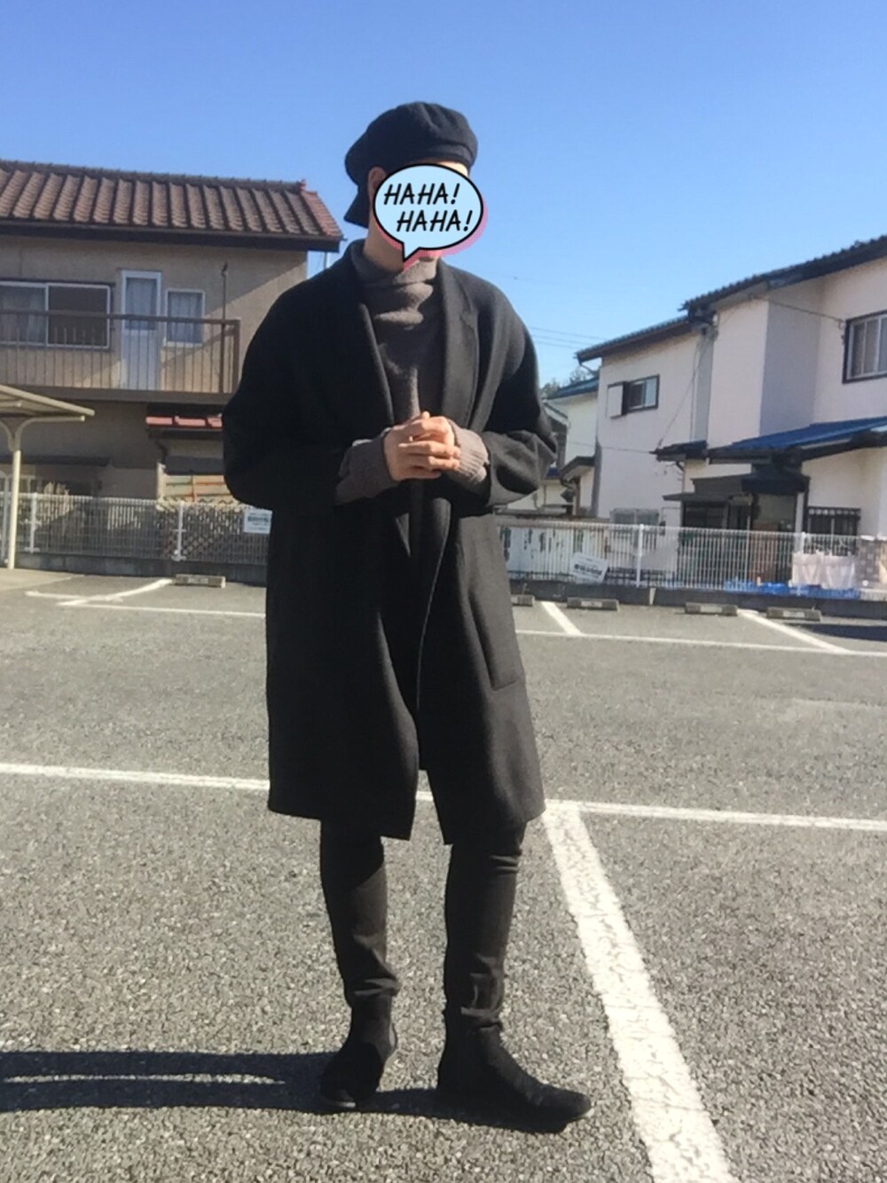 ユニクロレディースのアウターはやっぱり袖が短いので、袖が長めのセーターを中に キャスケットを後ろにかぶってベレー風に パンツとブーツを黒で揃えて足長効果狙ってます モノトーンでまとめて、大人っぽく