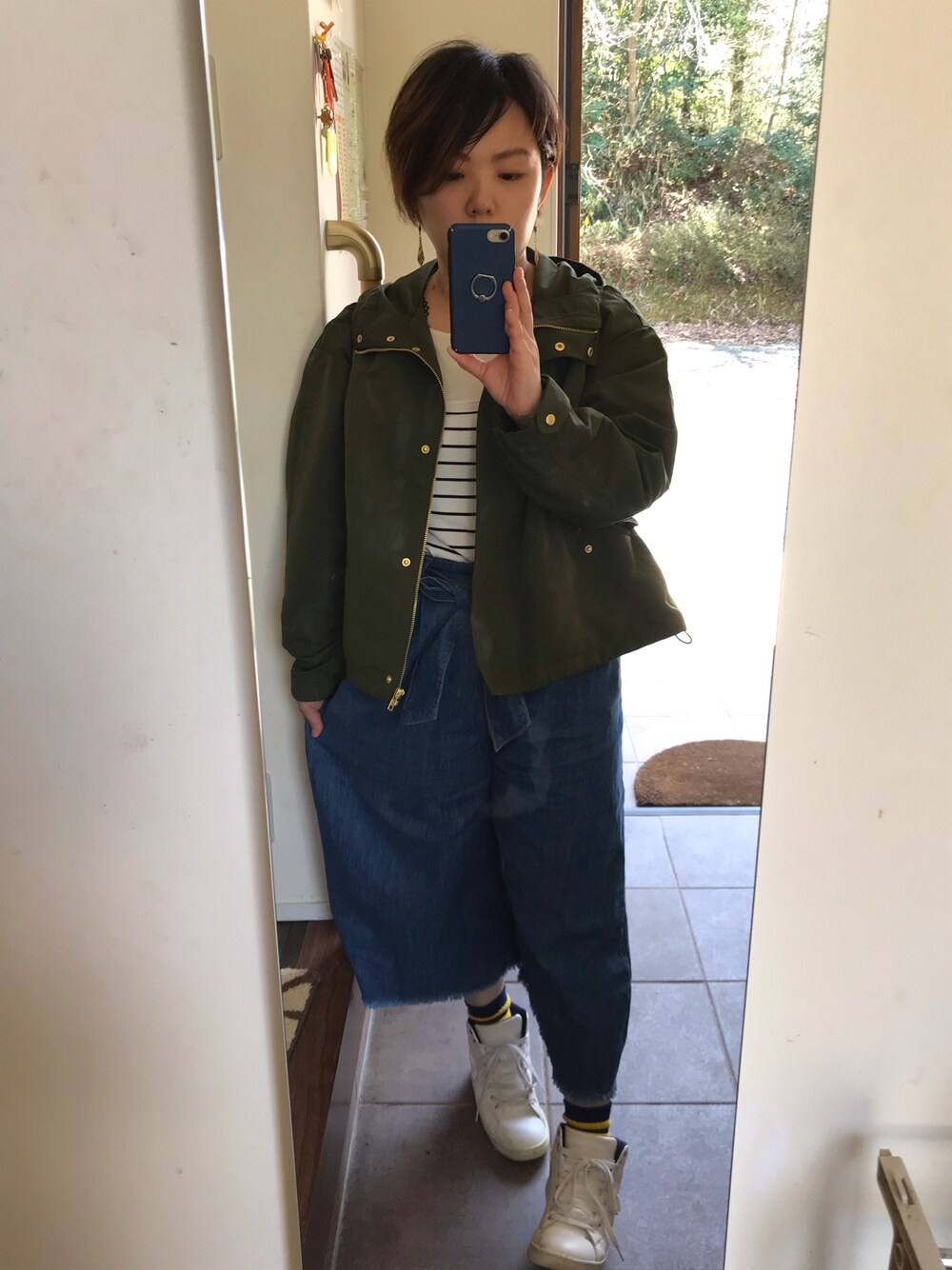 見て頂きありがとうございます😊 いいねなど下さる方! とっても嬉しいです😆 小春日和でしたね🌸 洗濯が沢山出来ました🙆♀️✨ 昨日から長期休みに入り、気持ちも身体もらっくらく〜❤️ そして私明日から岐阜に旅行🚘 楽しんで来ます🙋♀️ 今日は明日の旅行用昼ご飯の買い出し 旅行初日のお昼はいつも手作り弁当が恒例 まぁサンドイッチですが 今回はおかずなしのボリュームサンドにする予定 また写真撮ったら載せます 旅行中コーデもアップ出来たらします! 今日の残念体型コーデは 暖かいと見越しての少し薄手のアイテム達です マウンテンパーカー以外は去年の着まわし ボーダートップスにデニムガウチョ 春やし白スニーカー ヒラキで買っててずっと履きたいけど 丈短くて寒いしと履けなかった靴下 その靴下を見せたくて座ってるけど座ってるように見えない写真も載せました(笑) でも普通の写真のが靴下見えるな(笑) ピアスはこの前久しぶりに 100均で魅力的なアイテムを見つけて 創作意欲が湧いて作りました! あー明日天気微妙なんやんなー、、 まぁいっか(笑) 今日は早く寝よー💤