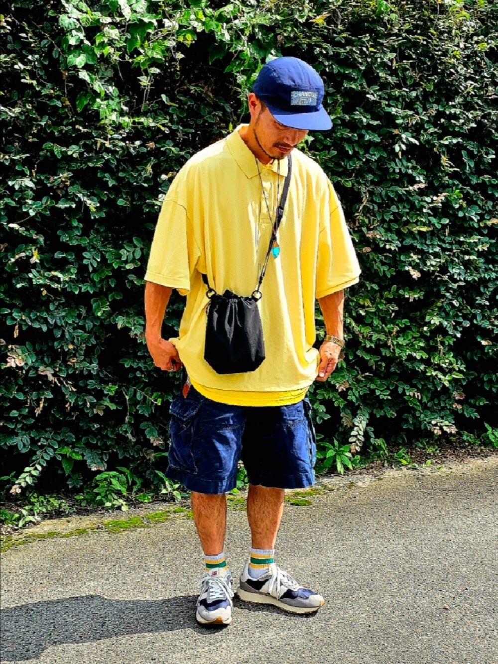どーも✋ 古着のPOLO RALPH LAURENのカーゴショーツとGUのワイドフィットポロシャツでストリートコーデです🛹 シンプルだけどイエロー🟡が映えていい感じ♪