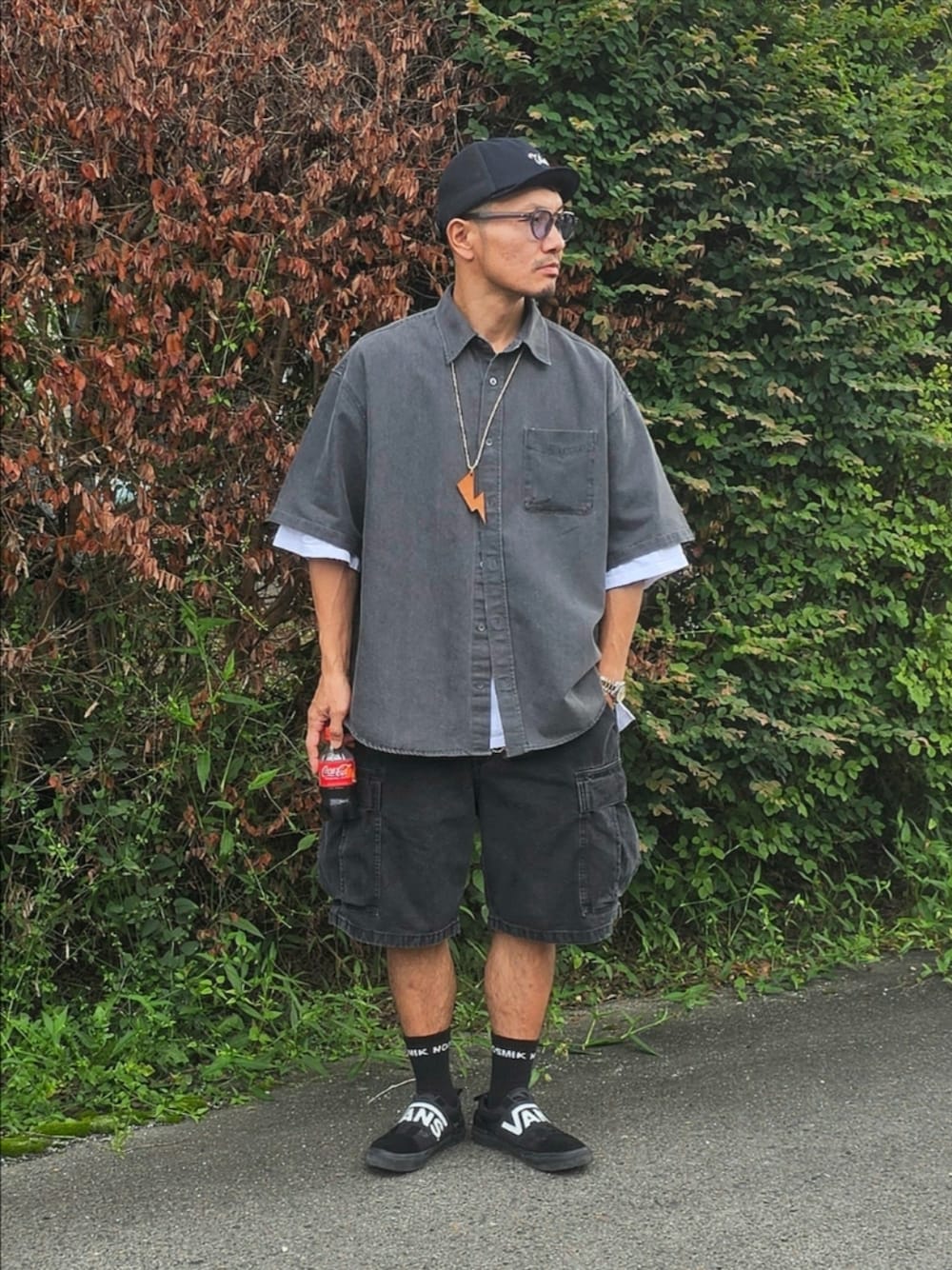 どーも✋ GUのデニムカーゴハーフパンツとHECTのデニムシャツでストリートコーデです🔥 デニムスタイル😊