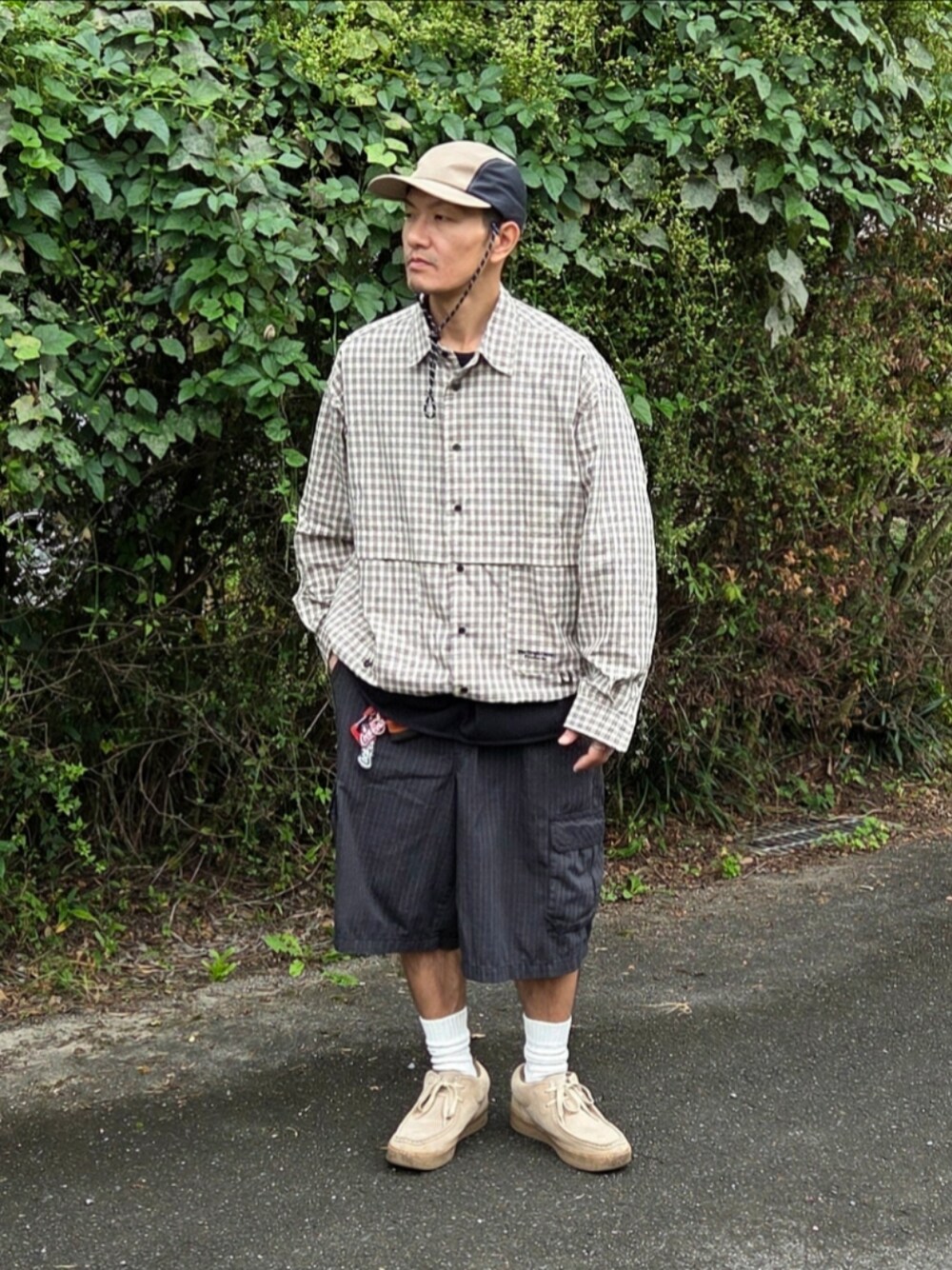 どーも✋ 古着のDickiesのカーゴハーフパンツとTHE CRAFT CREW PRODUCTSのチェックシャツでストリート古着MIXコーデです🔥 まだハーフパンツ穿いていたい😄