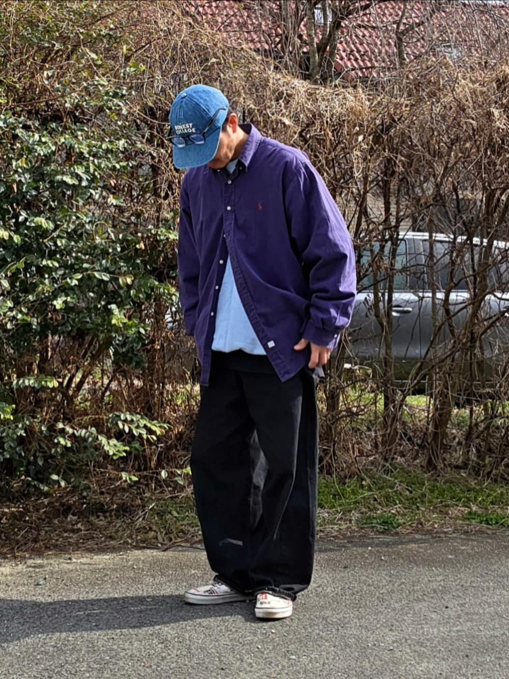 どーも✋ ドンキのバレルレッグジーンズとWHO'S WHO galleryのスウェットに古着のRALPH LAURENのシャツでストリート古着MIXコーデです🔥 ドンキのパンツはバレルレッグというよりワイドバギーって感じ。990円ならいいかな😊