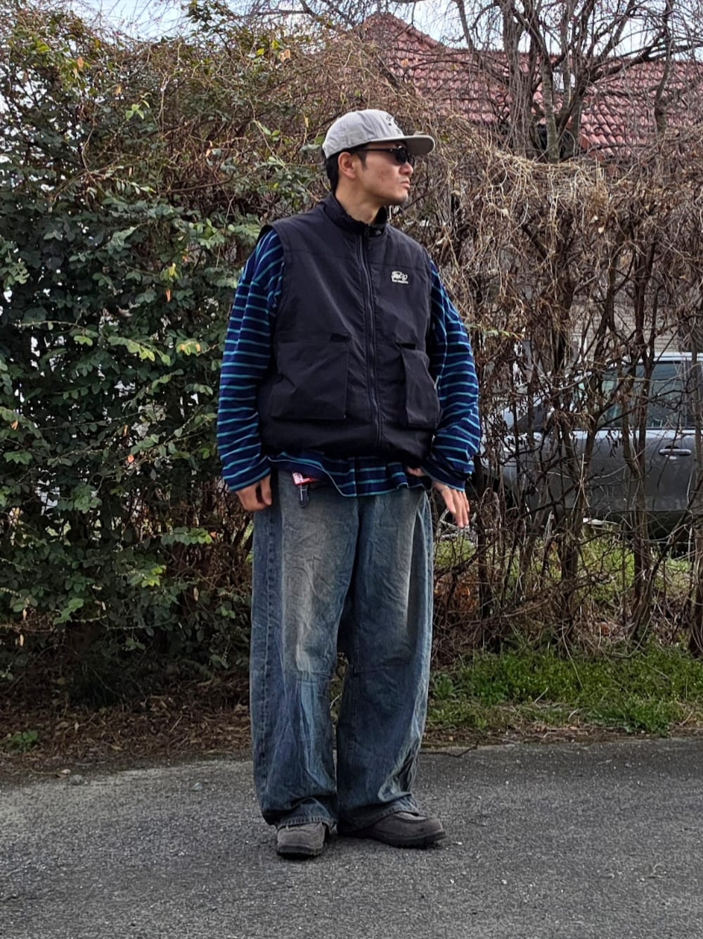 どーも✋ GUのバレルレッグジーンズとGAPのボーダーロンTにWHO'S WHO galleryのブルゾンでストリートコーデです🔥 そろそろ季節的に着れなくなるけど、4WAYブルゾンがかなり優秀😀