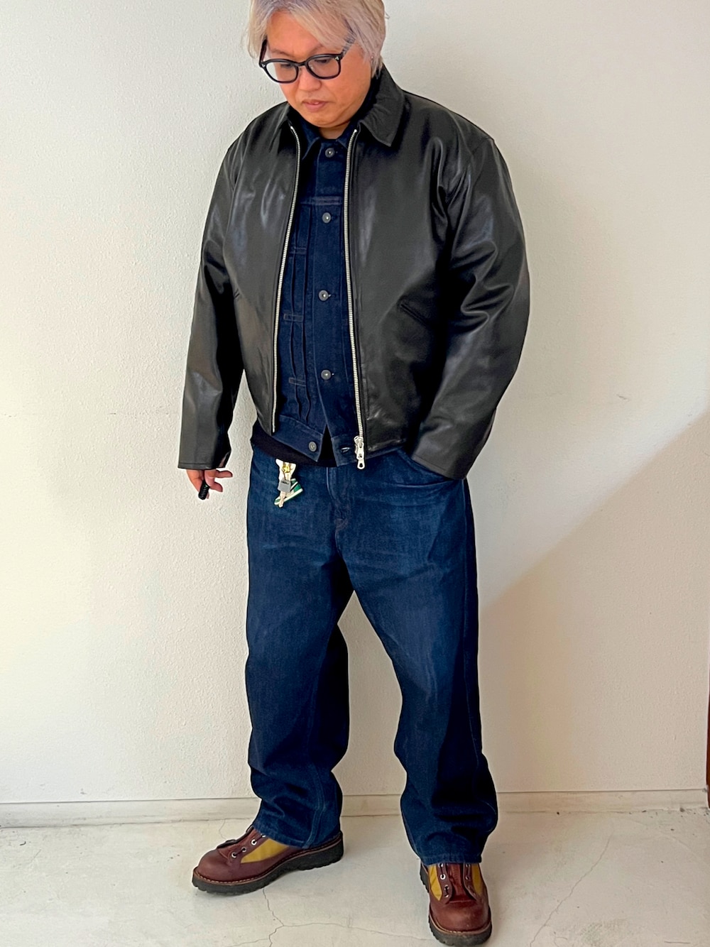 くぅろのライダースジャケット「FREAK’S STORE/フリークスストア Calf Leather ミニマル シングル ライダースジャケット/カーフレザー」を使ったコーディネート