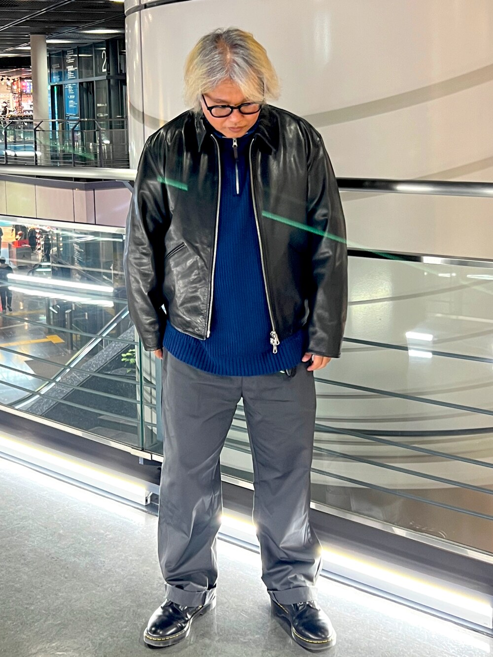 革ジャンとハーフZIPニットを使ったコーデ