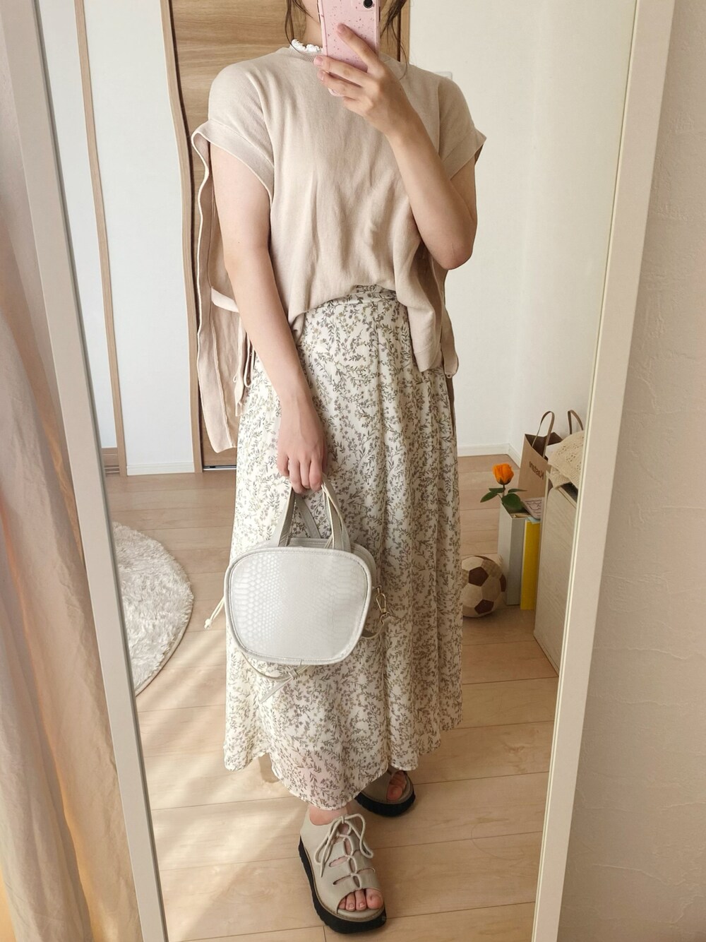 ご覧いただきありがとうございます🌸 いいね・お気に入りもありがとうございます´`* ୨୧┈┈┈┈┈┈┈┈┈┈┈┈┈┈┈┈┈┈୨୧ ベージュコーデ𓂃𓈒𓏸︎︎︎︎ 🕊 シンプルになりすぎないように 花柄スカートを合わせてみました⋆⸜ ⚘ ⸝⋆ ୨୧┈┈┈┈┈┈┈┈┈┈┈┈┈┈┈┈┈┈୨୧