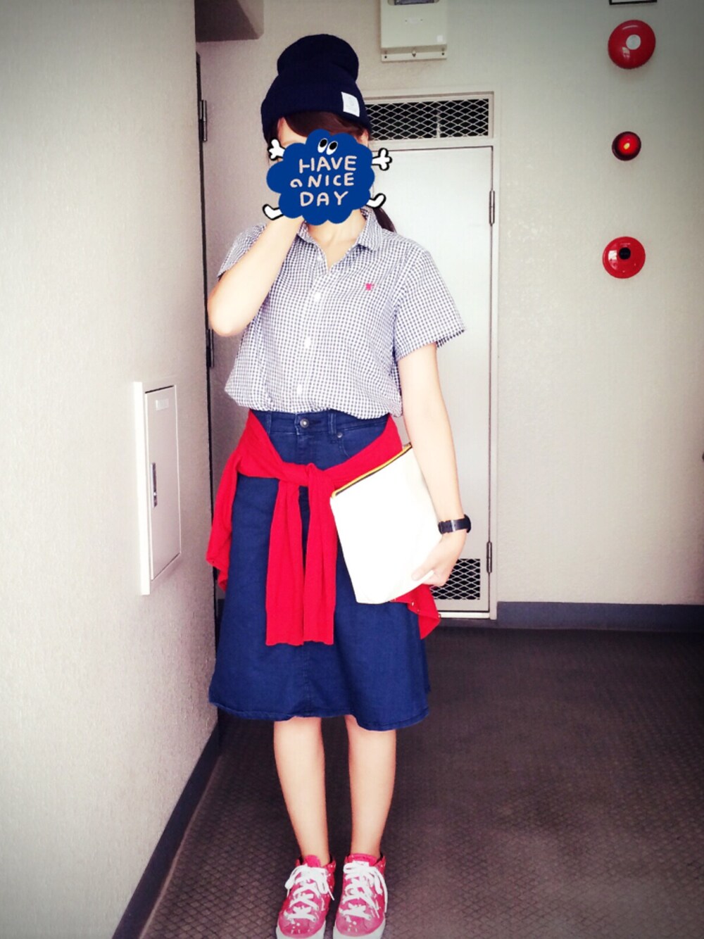 娘が撮ってくれました。笑 久々にすごくカジュアルなコーデにしました。ちびっ子が更にちびに見えます( ´Д` ) 女の子らしいお洋服を着てた時に、カジュアルはもう着ない!と、このシャツを処分してしまおうと思ってたのですが、捨てなくてよかった! また改めて可愛さに気づきました。笑 もともとお気に入りだったし♡