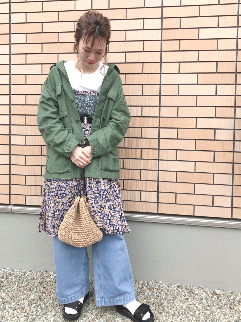 気付けば私服もLOWRYS FARM💜 ミリタリー大好き😘 ワンピースにしているこちらは スカートですが 私は大体ウエストゴムのスカートは ベアワンピースにしちゃう💜 まだちょっと寒いなー❄️ 早くあったかくなってほしいなー