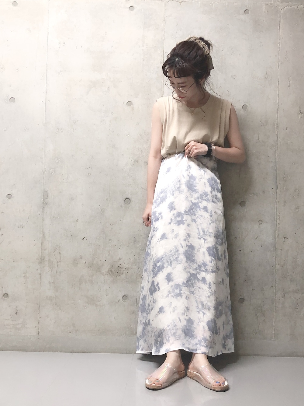 今季トレンド柄のタイダイ柄! ふんわり優しい色味なので 柄物でも挑戦しやすく ウエストはゴムなので たくさん食べても安心ですね! トップスとして着ているこちら! 実はワンピースなんです💜