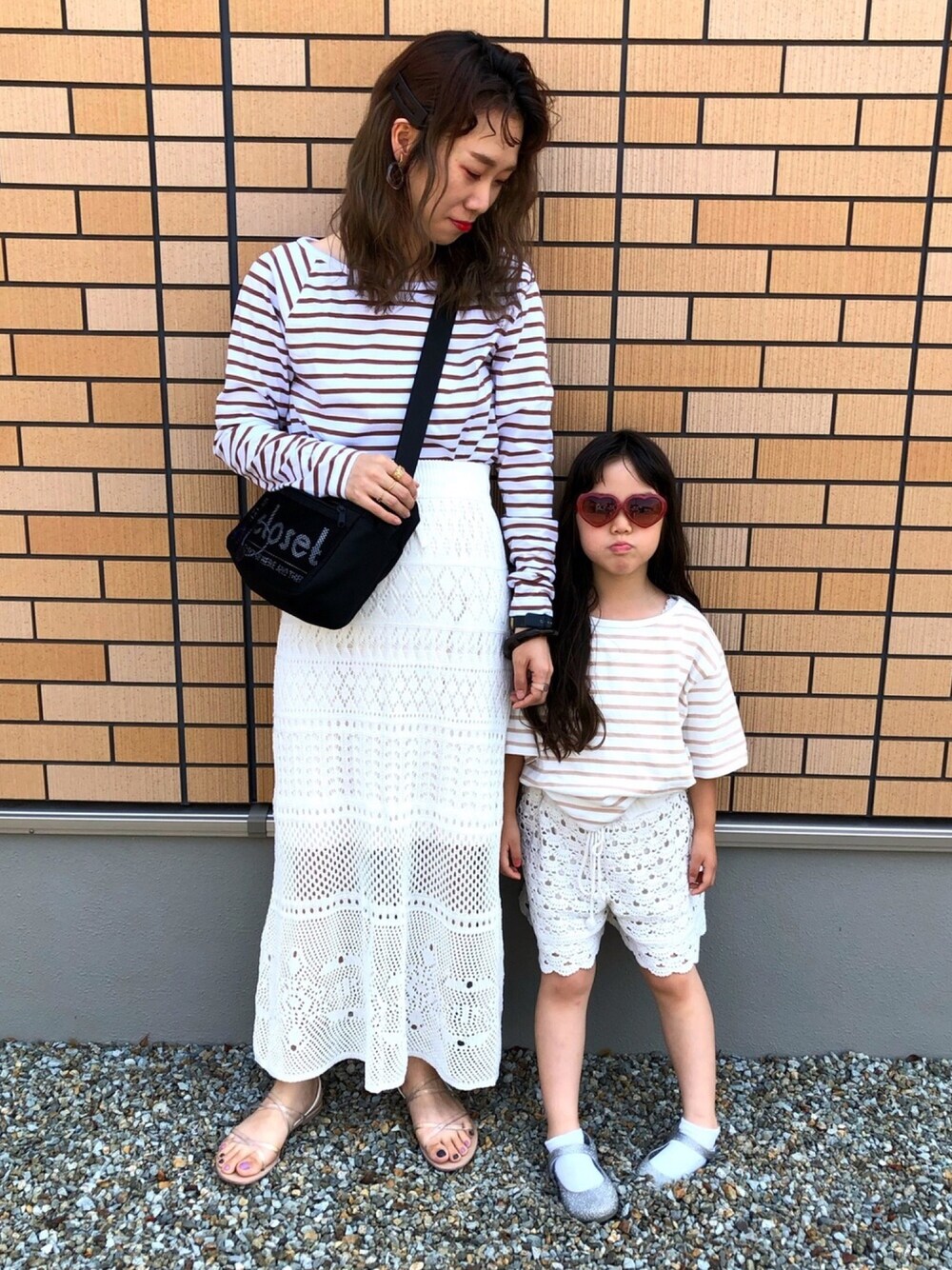 カギバリ×ボーダーコーデ★ 娘のカギバリパンツは 私が10年前くらいに履いてた LOWRYS FARMのものです! (物持ちが良いのです)