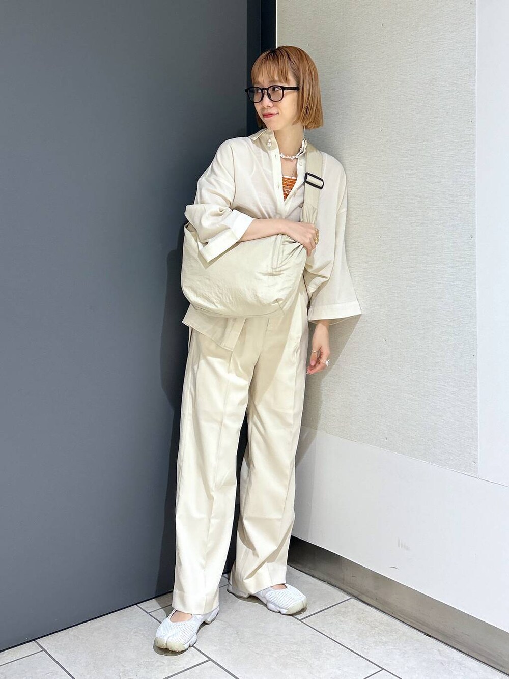 夏〜秋にオススメのアイボリーワントーンコーデ♪ アイボリーワントーンに インナーに差し色として オレンジを使ったのがポイントです^^ 秋に向けて、ブラウンやカーキなど 秋カラーのインナーを取り入れると 雰囲気も落ち着くので カラーインナーで色味を入れるのもオススメです♡ シャツ>> サラッとした素材の6分袖丈のシャツなので 夏の羽織りにも、秋口には薄手のシアーインナーや ロンTなど重ねて着るのもオススメです♪ シャツをインナーとして、上からベストを重ねたり Gジャンなど、秋の軽アウターを羽織るのも◎ 洗濯後はシワシワになりにくいです^^ パンツ>> LOWRYS FARM定番人気のワイドパンツ! アイボリーは太ももの部分まで裏地付きです♪ インナーは薄めの色にするか タンクトップなどを長めの着丈のものがオススメです! アムンゼンベストとセットアップでも着られます♪ 真冬以外の季節に使いやすい薄手の素材です^^ milkのinstagram →