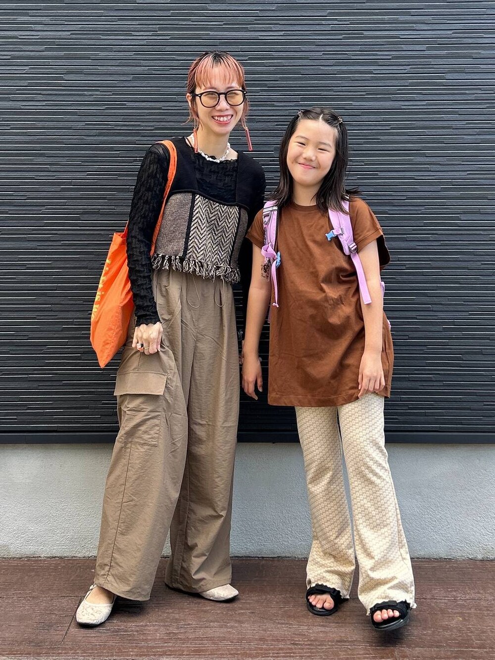 休日の親子コーデ👩👧 〜暑いけど秋色意識してみました〜 娘:小3/135cm/身長高め&ガッチリタイプ トップスは、昨年のLOWRYS FARM (母の) パンツは、LOWRYS FARM KIDS人気のフレアパンツ♪ web限定150サイズを着用しています! しっかりハイウエストではいて ギリギリくらいの裾丈です。 ストレッチも効いているので、楽そうですー🙆♀️ 母:160cm/骨格ウェーブ ビスチェとシューズは昨年〜一昨年のLOWRYS FARM トップスは、通年で使えるシアー素材で とっても伸縮性があってチクチクせず着やすいです♪ パンツは、再入荷しても即完してしまう程人気な ワイドパンツにもカーゴパンツにもなる優れもの! 裾に調整可能なゴムが付いてるので 裾を絞って着用するのもオススメです♪ milkのinstagram →
