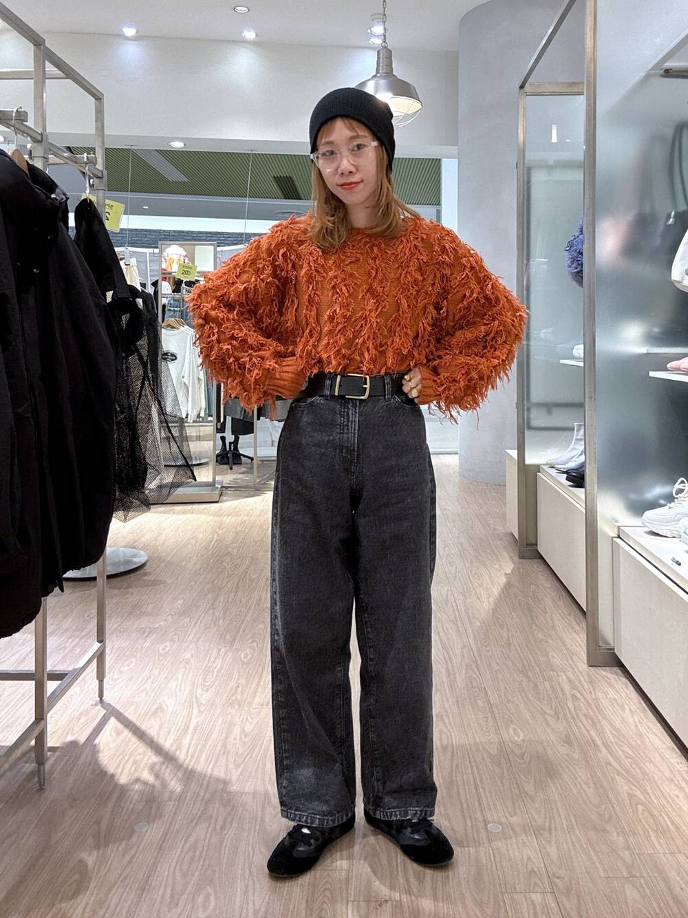 リアルバイコーデ🍊 LOWRYS FARM大人気のフリンジニット🧶 再入荷しましたー👏 新色のグレーもかわいいよ🩶 デニムは160cmでM着用してますが ダボっと着たい方はあえてのLでも◎👍 milkのinstagram → ご質問・コメント・DMもお待ちしてます♡