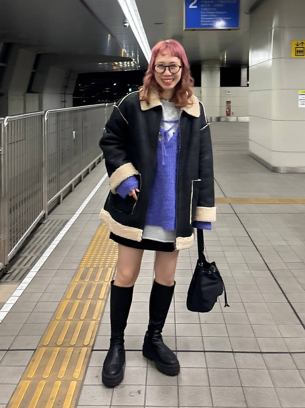 休日コーデ💜🩶🖤 リバーシブルで着られるボアのアウターは しっかりあったかいので今の時期手放せない必需品☝︎ 見た目はズッシリしてますが、軽いので 肩も凝らずとってもオススメです✨ milkのinstagram → ご質問・コメント・DMもお待ちしてます♡