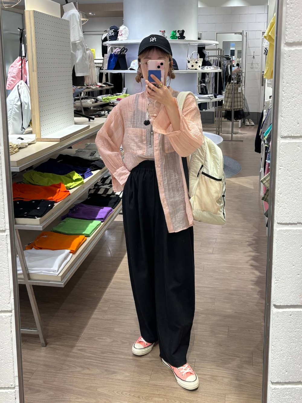 今日の店頭コーデ♥︎ コクーンパンツ>> 穿いた瞬間‼︎ 形めっちゃキレイやんっ♪って テンション上がったコクーンパンツ‼︎ ひとまず使える黒を買いました🐦⬛ 股上もほどよく深めなのでゆったり着られて◎ サラッサラ生地なので真夏まで使えそうです👍🏻🌻 シャツ>> 昨年も買ったバンドシアーシャツ! 今年はブルーを買いましたが 今日はピンクの気分だったのでこちらに🌷 洗濯してもそのまんまでいけちゃうので アイロン不要で優秀ですよー👍🏻 縦のシワ加工のおかげで肌に当たる面積も少ないので 夏場でも涼しく着られます🌻 ピンクでも甘過ぎずに着やすい淡めカラーなのと 見た目にも涼しげ素材なので これからの羽織にもピッタリです🙆🏻♀️ milkのinstagram → ご質問・コメント・DMもお待ちしてます♡