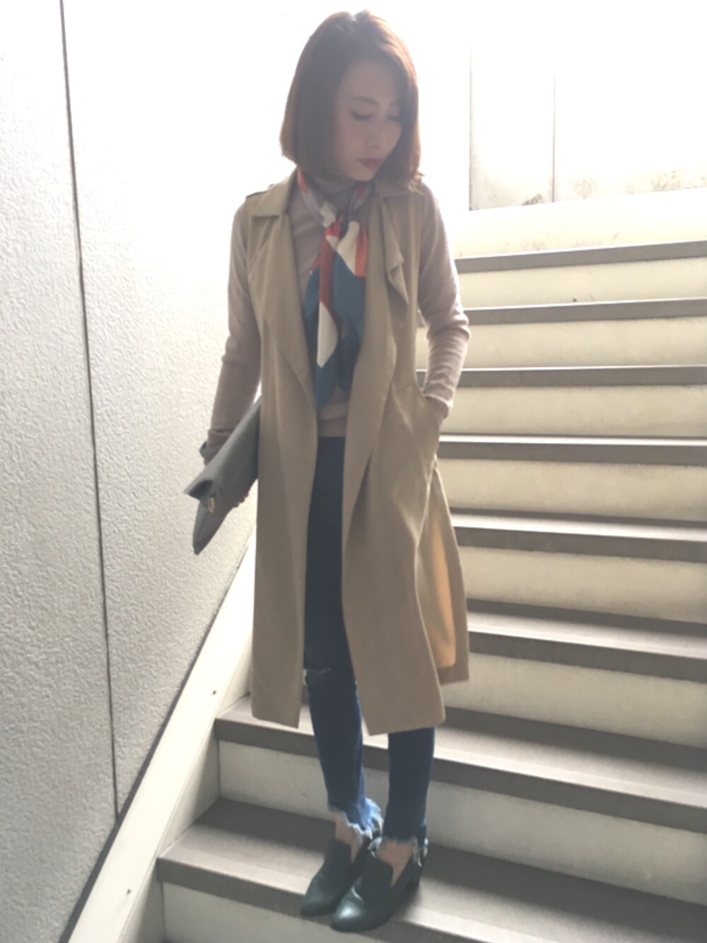 ヤマキミのトレンチコート「【4/19ヒルナンデスご紹介商品】ルーズトレンチ/ベスト-2016SS-」を使ったコーディネート