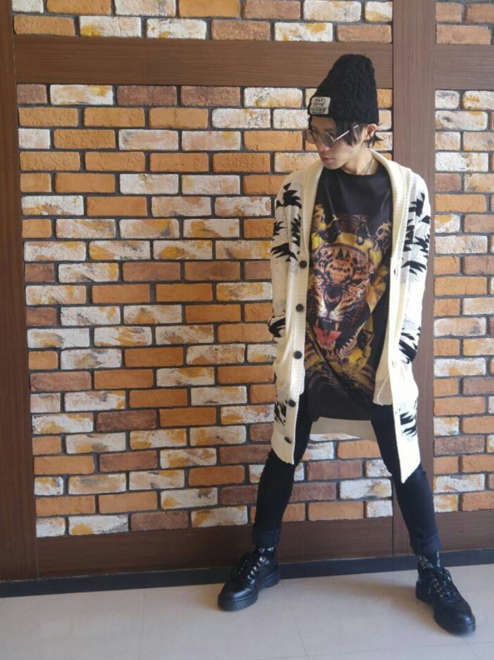 KMKSTAFFのカーディガン/ボレロ「「Ortega」オルテガ柄 ロングショール ニットカーディガン パーカー ドロップショルダー」を使ったコーディネート
