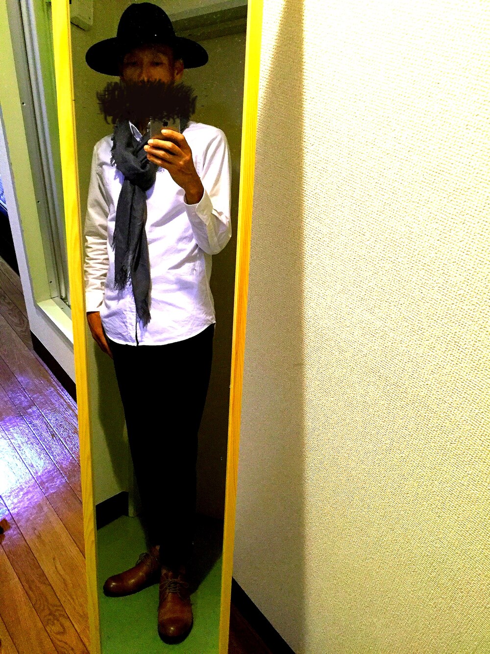 皆さん、こんばんは。 前回ハット被ってみてしっくりこなかったので しばらく被り続けてみました。 そしたら意外と?いいかも、いや、いいよ! みたいな。 ということで、今回もシンプルコーデです。 白シャツに黒のテーパードトラウザーに ドレスシューズ➕ストールなんぞ巻いてみました。