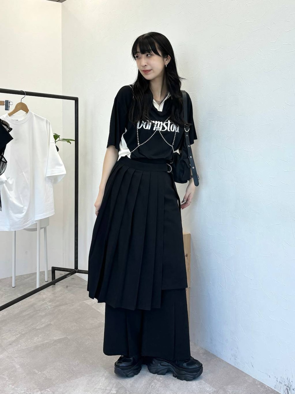 スカート✖️スラックス 今年らしいレイヤードコーデ🖤 ーーーーーーーーーーーーーーーー ◎アイテムに関しての質問 (サイズ感や色味など) ◎コーデのお悩み 気になることがありましたら お気軽にInstagramにDM下さい😗💖 ーーーーーーーーーーーーーーーー