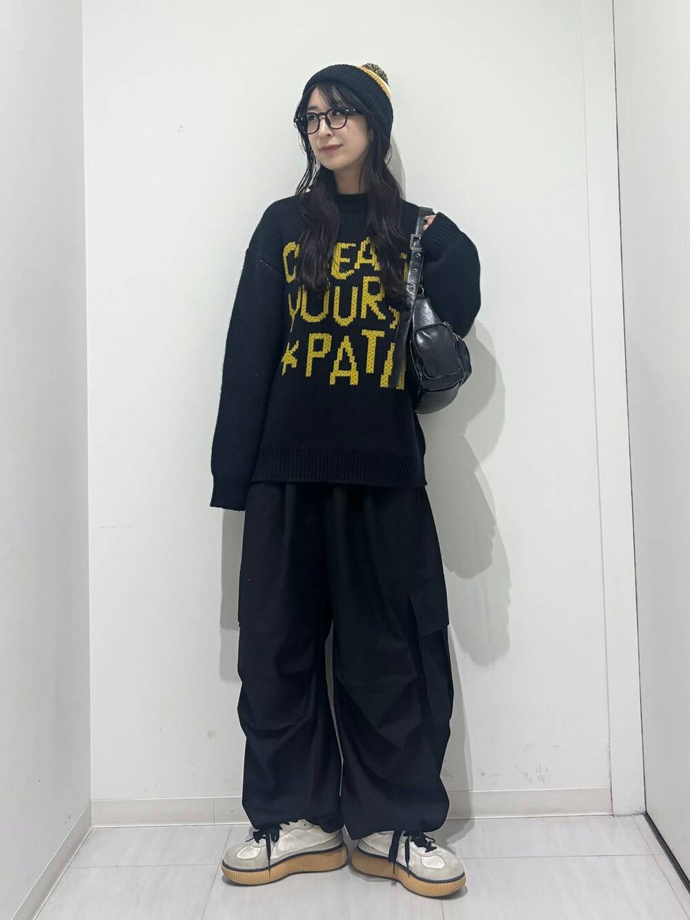 【ニット】 存在感のあるロゴデザインが可愛いニット🧶 肉厚なニットなのでしっかり暖かいです🤙🏻 【パンツ】 神シルエットのパラシュートパンツ🌟☝️ 腰の後ろにゴムが入っていて安心して履ける👌 下に広がるシルエットなので腰回りスッキリ見せられて体型カバーもできる⭕️ 裾は絞れるので長さ調整可能です🉑 なんといっても、落ち感があるシルエットが最高🤙🏻👊🏻 ーーーーーーーーーーーーーーーー ◎アイテムに関しての質問 (サイズ感や色味など) ◎コーデのお悩み 気になることがありましたら お気軽にInstagramにDM下さい😗💖 ーーーーーーーーーーーーーーーー