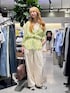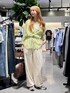 シャツはスウェットパンツに付属の紐でウエストマークしてます🎀 カラーを使った春服コーデ💞🤍