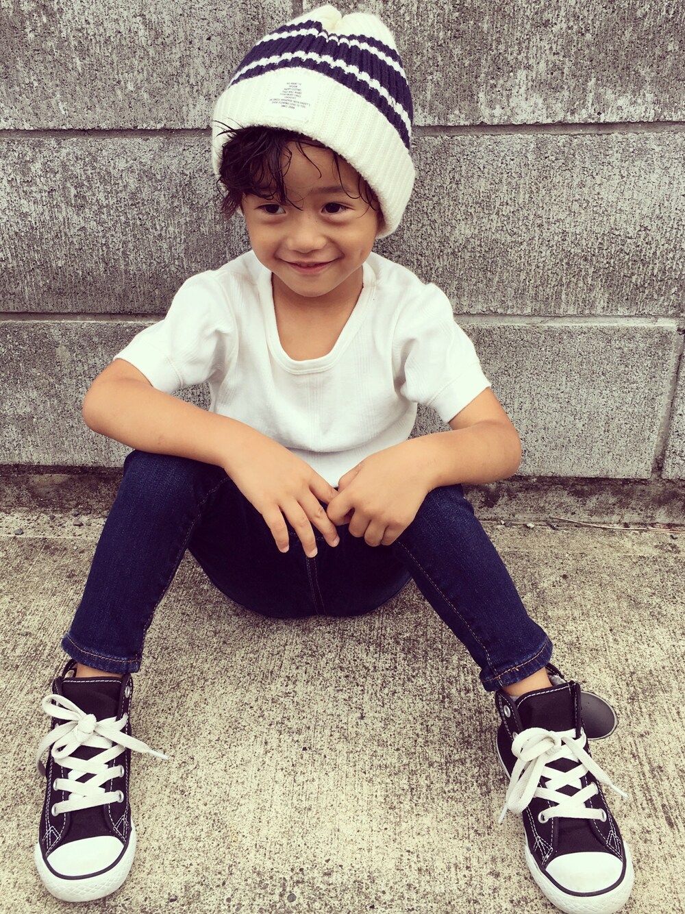 悪い顔してますよー笑 . 目線の先には…長女😂 . 髪が伸びてきて誤魔化しでニット帽‼︎ 可愛い♡可愛い♡ 男の子のニット帽なんでこんな可愛いんだろう笑💕 . そろそろカットだけして…10月下旬にパーマかけようかな🤔