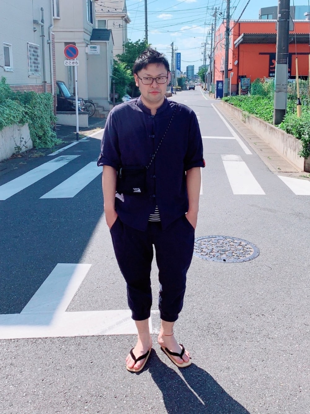 TODAY'S STYLE EYE WEAR : HARE KUNG-FU SHIRTS : KM-STYLE PANTS : KM-STYLE SHOSE : 雪駄 近所スタイル時々鈴木敏夫(ジブリ)