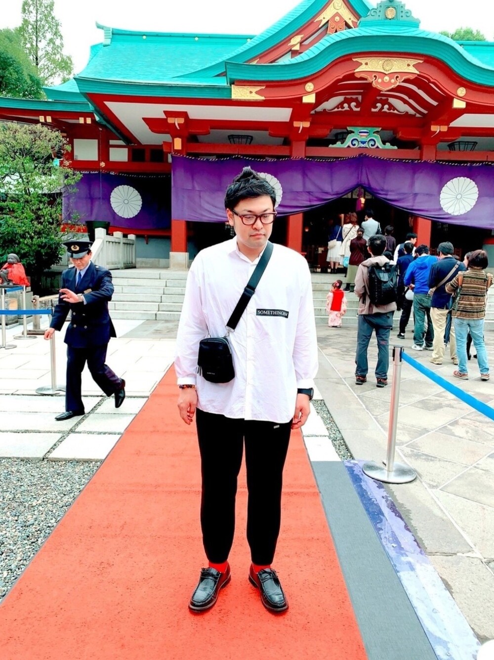 TODAY'S STYLE SHIRTS : HARE WOTCH : HUBLOT PANTS : HARE SHOSE : NO NAME 最近このような服装をスダマサキスタイルと呼んでいます。 愛が僕に噛み付いてください。 しかしこの写真の一等賞は、 後ろの警備員さんです。