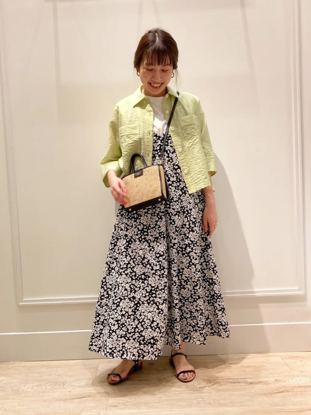 □shirt シアー素材のクロップドシャツ。 さらっとした軽い素材なので、カーディガン代わりに日除けや冷房対策としても着ていただけます。 クロップド丈なので、ワンピースにも合わせやすい丈感。 一枚着シャツとしてワイドパンツやスカートと合わせるのもおすすめです。 □one piece 花柄が可愛いキャミワンピース。 インナーを変えて着回しも楽しめます。 ポコポコとした素材で、夏でも涼しく着ていただける一枚。 シワも気になりにくい素材なので、旅行やお出かけにもおすすめです。
