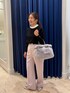 【ニット】 プリーツ衿が可愛いニット。 フリルブラウスをレイヤードしたようなデザインで、一枚で華やかに着ていただけます。 コンパクトなサイズ感ですっきり見え◎ インしなくてもすっきり着ていただけます。 非ウール素材のニットなので季節感も長く着用できおすすめです。 【パンツ】 毎シーズン人気の愛されシリーズ。 セミワイドなので太すぎずすっきり履けるシルエットです。 裏地付きなので冬まで履ける素材感◎ ベビーピンクは差し色になるのでコーデのポイントにおすすめです。