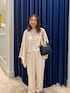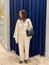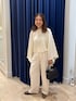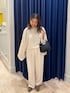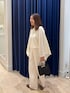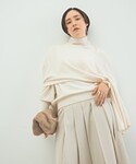 【ニット】 ポンチョのようなシルエットのニット。 ざっくりした大きめのサイズ感が可愛い! 肌触りの柔らかいウール素材で着心地も◎ 短めの丈感なのでワイドパンツでもバランスとりやすくすっきり着ていただけます。 なんとマフラーにもなるニットなので、いろんな着こなしで楽しんでいただけます。 【パンツ】 艶感のある素材がキレイなワイドパンツ。 タック入り、後ろゴムのデザインで履きやすいデザイン。 太すぎずすっきり見えるのでトップスも合わせやすくおすすめです。 冬のワントーンコーデにもおすすめです。