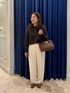 【ニット】 ふわふわ素材が着るだけで可愛いニット。 肌触りも柔らかく、軽い着心地◎ かなりあたたかく着れるニットです。 前後2way着用可能◎ 短すぎない丈感でボトム選ばず着ていただけます。 ブラウンは今年らしいカラーでおすすめです。 【パンツ】 少し艶感のあるキレイめパンツ。 ワイドすぎないシルエットですっきり履いていただけます。 タック入りと後ろゴムデザインで履きやすさも◎ 裏地付きなので透け感も気にせず履いていただけます。